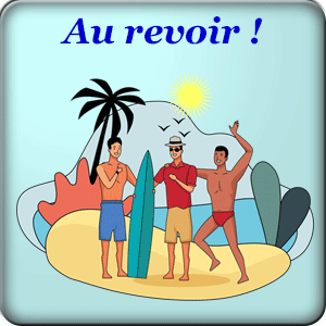BONJOUR - BONSOIR - BONNE NUIT - BONNE JOURNÉE - A DEMAIN - A PLUS TARD - A BIENTÔT - AU REVOIR - COUCOU - QUE C'EST BEAU - JE SUIS PRESSÉ - ON A EU CHAUD - COMMENT ALLEZ-VOUS ? - COMMENTAIRE VAS-TU ? - QUELLE GALÈRE ! - FAIS DE BEAUX RÊVES - JE M'EN FICHE ! - CE N'EST PAS POSSIBLE - ÇA COGITE ? - TOUJOURS EN FORME ? - LES CAROTTES SONT CUITES ! - REVENONS à NOS MOUTONS ! - JE DONNE MA LANGUE AU CHAT ! - ÇA NE PEUT PLUS DURER !